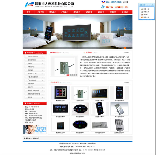 深圳市大粤发科技有限公司拥有专业的研发团队,不断的创新,专注于:过线合页、过线器、电子密码锁、桑拿锁、酒店锁、感应锁、房门显示牌、门铃、开关及客房智能控制系列产品的开发与销售,产品应用领域相当的广泛。