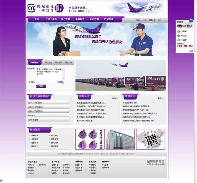 深圳市跨越物流有限公司(简称跨越速运),是一家主营“国内限时”快递的大型现代化综合物流企业,主要从事门到门的快递服务已有多年经验,结合公司在国内各机场的网络,并全面在国内二级和三级城市铺设网点。 自成立以来,公司根据自身在各机场设有专门的调度中心,加之拥有自己的包机和无与伦比的航线自主权,采用全网络统一管理的优势, 在行业中首度对客户推出“限时未达,全额退款”承诺。