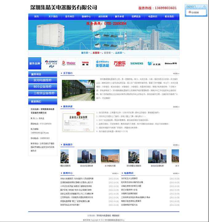 深圳集美集电器服务公司,是一家集家电,制冷,中央空调,冷库,维修保养设计安装一条龙服务企业,拥有各种大小型先进检测设备,是众多厂家的授权服务商,掌握了技术精髓,专注于:中央空调维修,冷库维修,制冰机维修,冰箱维修,冷柜维修,液晶视机维修,等离子电视维修等,下设制冷部,家电部等部门。深圳集美集电器服务公司拥有严格的管理制度,拥有多年工作经验的专业维修技师,每个技师都是经过正规培训有劳动局颁发的专业资格证书,良好的服务态度,过硬的技术赢得广大客户。